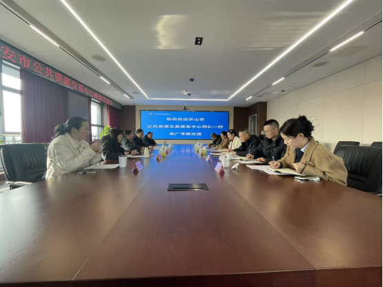 1月8日,乐山市公共资源交易服务中心副主任严艺鑫一行到广安市考察交流远程异地评标、工位式分散评标改革、保证金管理、交易见证等方面工作情况,广安市公共资源交易中心主任王海云等陪同参观广安市公共资源交易服务场地。