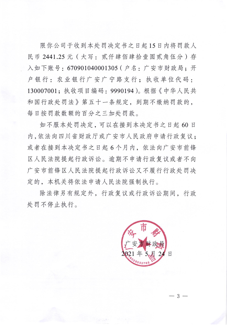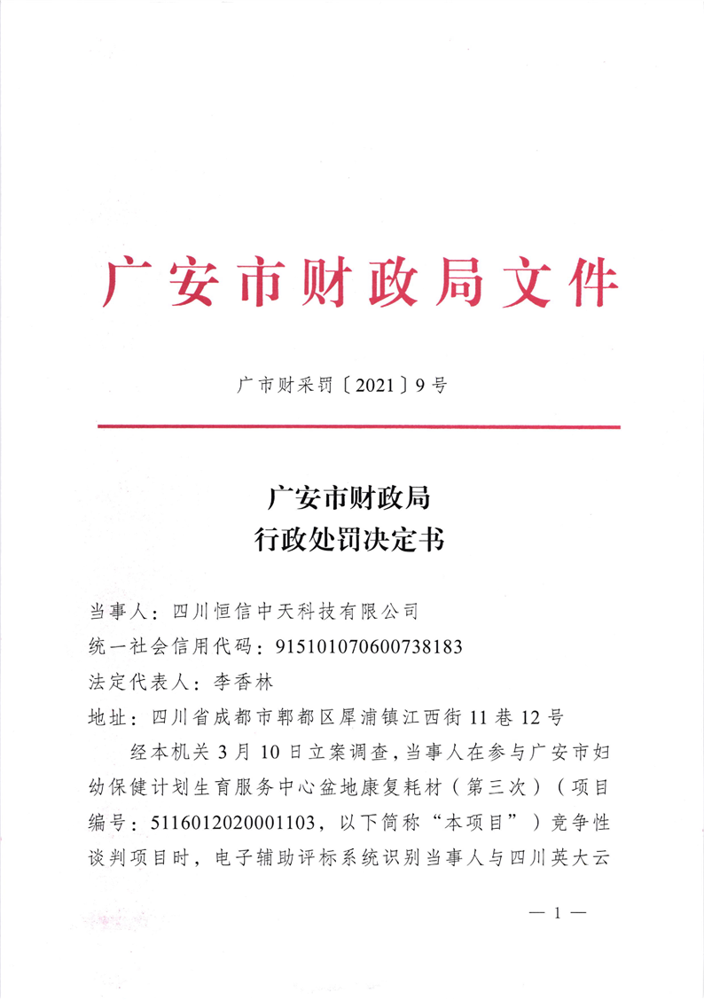 行政处罚决定书-四川恒信中天科技有限公司(广市财采罚〔2021〕9号)