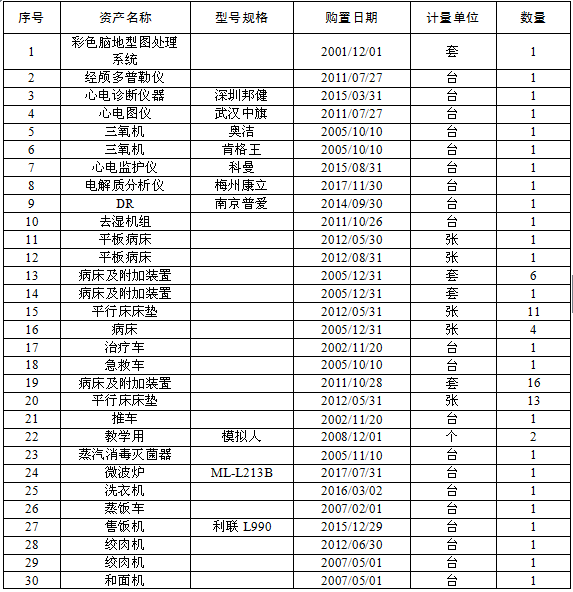 备注:成交后由竞得人自行到广安市第三人民医院提取标的物。