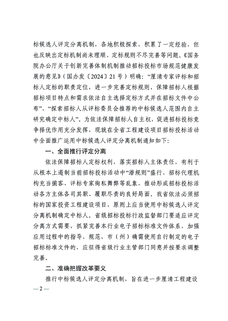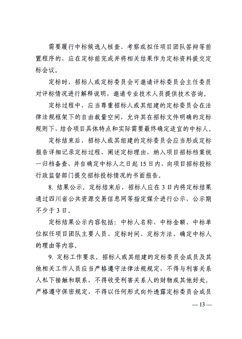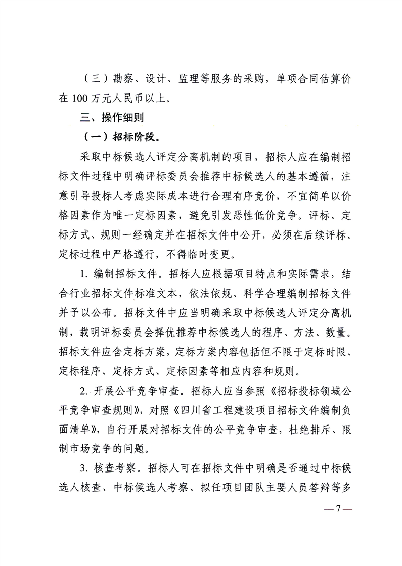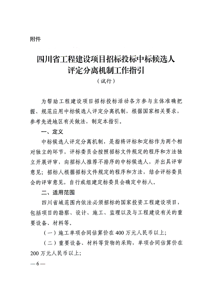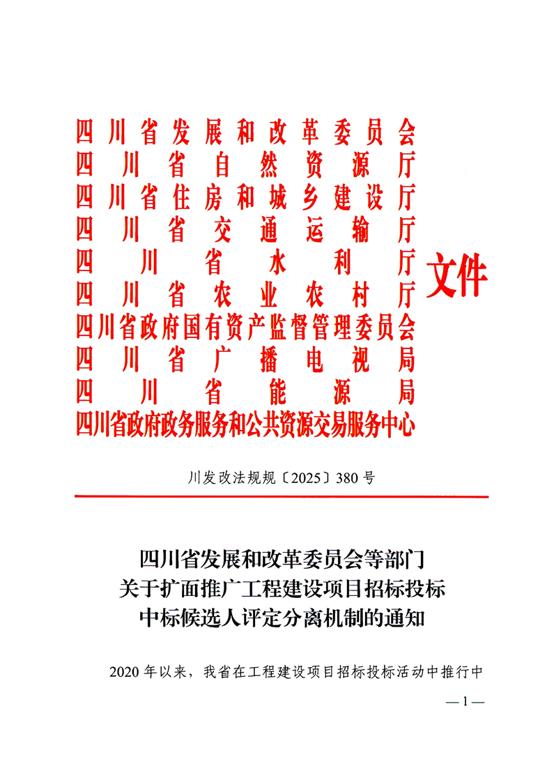 四川省发展和改革委员会等部门关于扩面推广工程建设项目招标投标中标候选人评定分离机制的通知