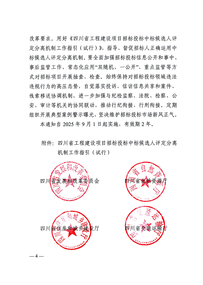 四川省发展和改革委员会等部门关于扩面推广工程建设项目招标投标中标候选人评定分离机制的通知